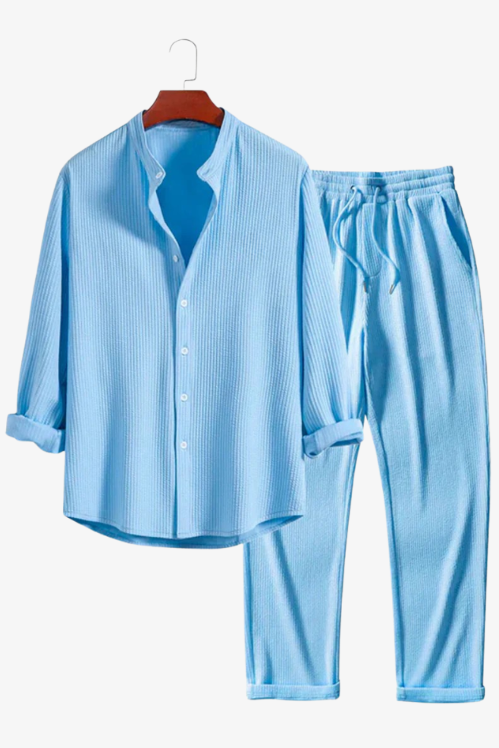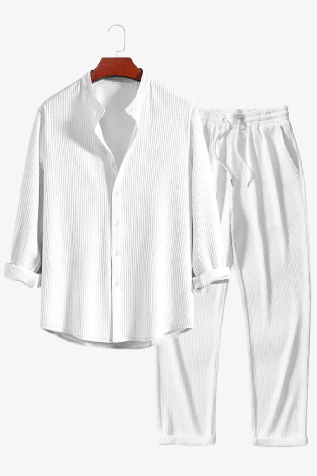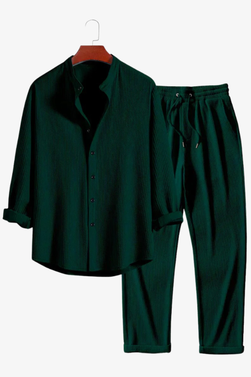 Tiefes Schwarz, fließender Schnitt, moderner Look. Dieses zweiteilige Premium-Set vereint minimalistische Eleganz mit hohem Tragekomfort. Entworfen für Männer, die bei jedem Anlass stilvoll auftreten möchten – der weiche, strukturierte Stoff passt sich perfekt Ihren Bewegungen an.